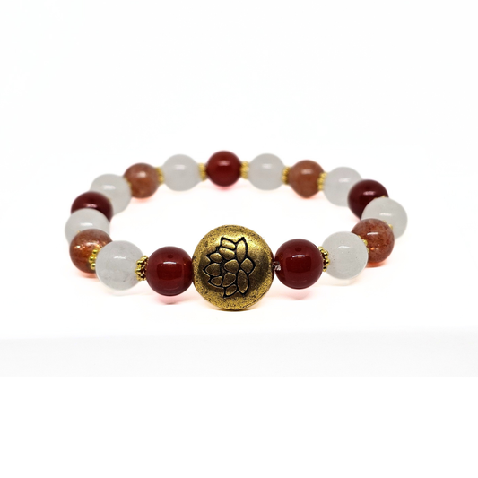 Sunstone Bracelet with Carnelian Spacers and Buddha Charm/Closure