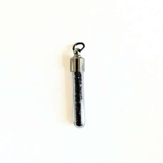 Black Tourmaline Chips Glass Vial Pendant – Grounding, Protection & Energy Shielding