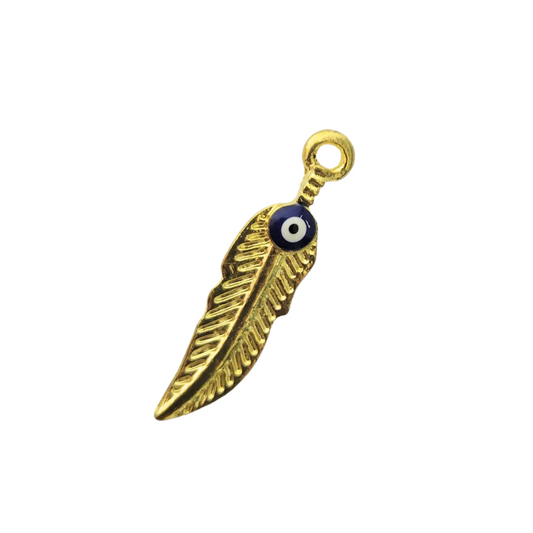 Gold Colored Feather & Evil Eye Pendant - Talisman of Light, Protection, and Spiritual Balance