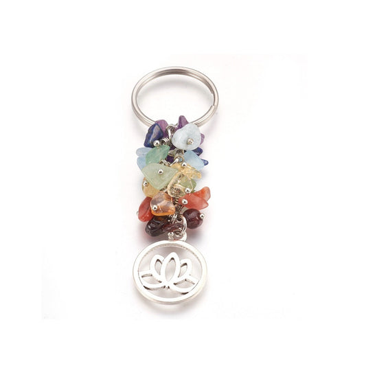 Chakra Gemstone Chip Keychain with Lotus Charm