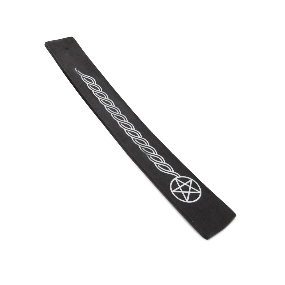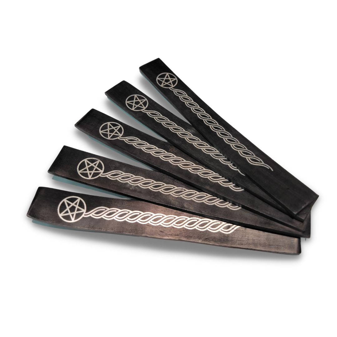 RadianceGifts.com is delighted to introduce the Black Pentacle Ash Catcher, a beautifully designed and practical addition to your sacred space. Crafted from black painted wood and adorned with a pentacle and Celtic rope design, this ash catcher provides a stylish and convenient way to burn your incense sticks.