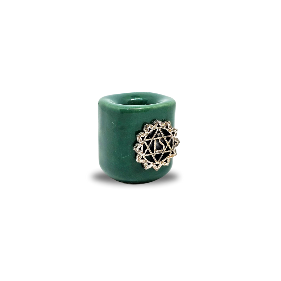 Welcome to the world of spiritual illumination with our Heart Chakra Mini Ceramic Candle Holder with Emblem. Crafted with exquisite detail and precision, these mini ceramic candle holders are tailored to accommodate mini ritual candles, measuring at a convenient 1.25 X 1 inch.