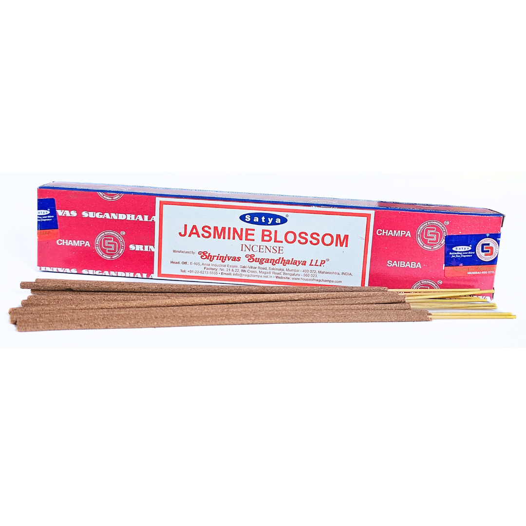 Let the air bloom with the rich, intoxicating fragrance of Satya Jasmine Blossom Incense Sticks—a timeless floral scent that enchants the senses and uplifts the spirit. Hand-rolled in India using traditional masala methods, this luxurious blend captures the essence of fresh jasmine flowers in full bloom, offering a deeply sensual and spiritually elevating experience.