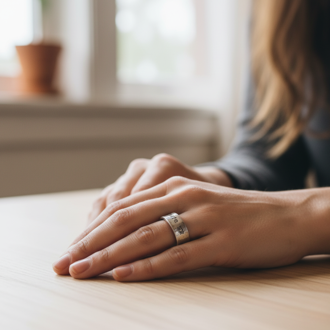- Namaste and Lotus Design: The ring features the word "Namaste" gracefully engraved alongside a delicate lotus flower, symbolizing purity, enlightenment, and spiritual awakening.