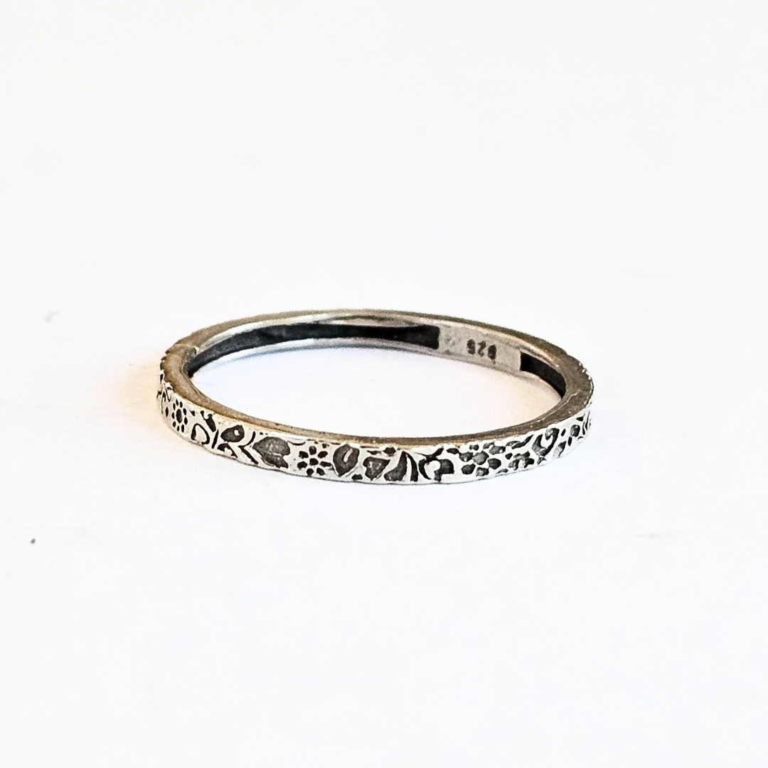 Elevate your everyday elegance with our Sterling Silver Band, featuring a thin, intricately designed pattern. This beautifully crafted ring is perfect for those who appreciate subtle sophistication and timeless style.