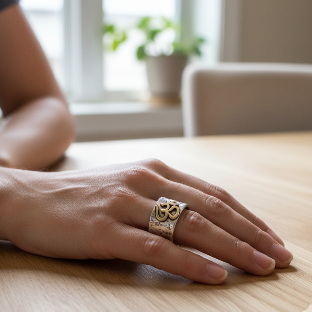 This ring is not just an accessory; it's a symbol of inner peace, spiritual awakening, and a reminder of the harmony that can be found in the union of the simple and the sophisticated.